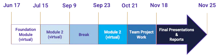 - Next 12 weeks: Weekly two-hour virtual sessions, with the first hour for lectures and the second for guided project work. Sessions will be held on Wednesdays during work hours.