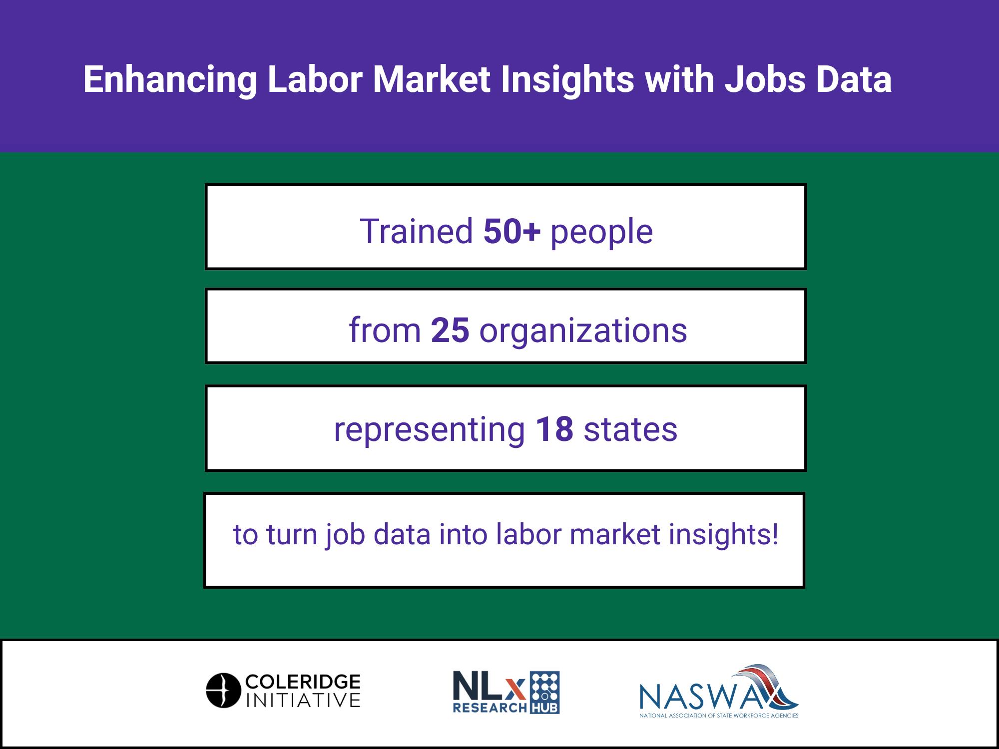 What do job postings reveal about the evolving labor market and how can those insights be used to shape workforce programs and policies? Our two-part Enhancing Labor Market Insights with Jobs Data Applied Data Analytics (ADA) Training Program equipped over 50 participants representing 25 organizations from 18 states with the tools and skills they needed to examine those questions. We led the program across two cohorts in partnership with the National Association of State Workforce Agencies (NASWA) and the National Labor Exchange (NLx) Research Hub from October 2024 to April 2025. Advancing Data Literacy to Support Evidence-Based Decision-Making Our Enhancing Labor Market Insights with Jobs Data program began with four weeks of training in basic coding concepts and use of the Administrative Data Research Facility (ADRF)–our secure cloud environment for working with restricted-use data. In the 12 weeks that followed, participants learned about exploratory data analysis, record linkages, contextualizing employment demand, labor market projects, and other key topics. From Knowledge to Action: Collaborative Research Projects With access to NLx job posting data from 2015 onward, participants applied their skills through collaborative research projects that explored eight key labor market questions. Team Connecticut and Oregon: How can job postings help educators identify skills in high demand? Using 2023–2024 NLx job postings data from Connecticut and Oregon, the team built an interactive dashboard that: · Identifies in-demand occupations · Reveals top skills currently in high demand from employers using O*NET · Highlights active employers · Links directly to current job ads Learn more here: https://tinyurl.com/2dtuyst8 Team Mississippi and Tennessee: How do employers adjust hiring requirements in response to worker shortages? Using 2018–2023 NLx job postings data from Mississippi and Tennessee, along with Occupational Employment and Wage Statistics, the team compared shifts in required education, skills, and experience across occupations and identified patterns of employer flexibility in response to labor market gaps. They also highlighted how these adjustments can inform workforce development strategies and pointed to future opportunities for deeper analysis of trends across industries and occupations. Learn more here: https://tinyurl.com/p6d542r6 Team New Jersey, Pennsylvania, and Ohio: How can job ads be used to measure labor demand across the economy? Using NLx job postings data, the Job Openings and Labor Turnover Survey (JOLTS), and the Quarterly Workforce Indicators (QWI), the team defined demand as the total requirement for labor and examined postings to capture employer needs for workers and specific types of work. Learn more here: https://tinyurl.com/3u4b5tv3 Team Maryland and Virginia: Which employers are driving growth in the rapidly expanding cybersecurity market and what does the demand for labor look like? The team used 2021–2024 NLx job postings data for their states and DC, Integrated Postsecondary Data System data, and the Maryland College Labor Sector and Wage Explorer to examine which: - Employers are driving the regional hiring surge - Cybersecurity roles are most in demand - Technical skills dominate job descriptions Learn more here: https://tinyurl.com/yzz7de47 Team Missouri and Wisconsin: How is the labor market being reshaped by the growing use of artificial intelligence (AI) tools? Using NLx job postings, the occupations list from Wisconsin’s Taskforce on Artificial Intelligence, Occupational Employment and Wages Statistics (OEWS), states’ employment projections data, O*NET/Standard Occupational Classification, and an “AI exposure” measure developed by the Wisconsin AI Task Force, the team compared job postings across ten high-exposure and ten low-exposure occupations to see where automation might hit hardest or barely register. They also examined shifts in demand and skills requirements, highlighting which workers are most at risk and how states can prepare for the future of work. Learn more here: https://tinyurl.com/ywkhd3k3 Team Colorado, Illinois, and Kentucky: How do layoffs correlate with trends in job postings? Using NLx job postings and WARN data, the team examined whether new opportunities emerge where jobs are lost, evaluated the reliability of WARN notices and other signals as early warnings, and analyzed whether displaced workers can realistically fill new job openings. Their approach sheds light on how labor market shocks ripple through the system and whether affected workers can be absorbed into new demand. Learn more here: https://tinyurl.com/5n77xby3 Team California and Washington: What are the most common requirements for occupations with low-barriers-to-entry and how do they differ for emerging occupations? Using NLx job postings, the team identified roles with minimal credentials that lead into fast-growing fields, revealing the first rungs on new career ladders. Their analysis highlights how these entry points shape worker mobility and guide state strategies for building inclusive pathways into the workforce. Learn more here: https://tinyurl.com/2d97n683 Team New York and Texas: How does labor demand line up with local labor supply across major metros? Using NLx job postings as demand and American Community Survey measures as supply, the team compared patterns by O*NET Job Zones in cities like New York and Dallas, incorporating wages to identify tight or slack markets. They revealed mismatches between who is hiring and who is available to work, and highlighted data caveats, such as geographic clustering and occupation definitions, to support smarter regional workforce planning. Learn more here: https://tinyurl.com/yc3pbhja